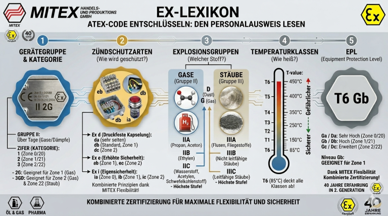 Hinter einer Kennzeichnung wie II 2G Ex db IIC T6 Gb verbirgt sich kein Zufall, sondern ein präzises System.