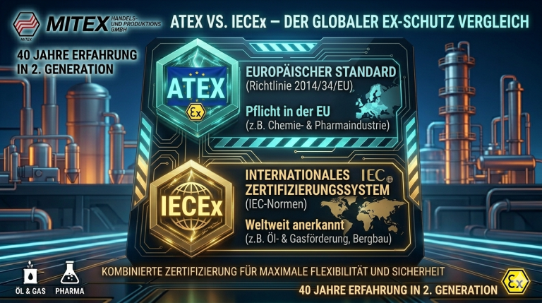 Brauche ich ATEX? Reicht IECEx? Und was ist eigentlich der Unterschied? Bei MITEX begleiten wir Kunden seit über 40 Jahren durch den Zertifizierungs-Dschungel.